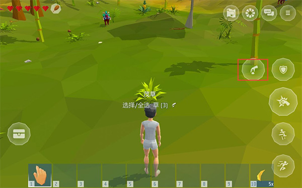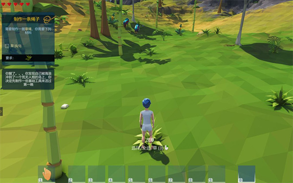 在学会基础操作后,根据屏幕左上角的提示开始收集【草x3】制作一条【绳子】。这也是【新手教程】的第一关。