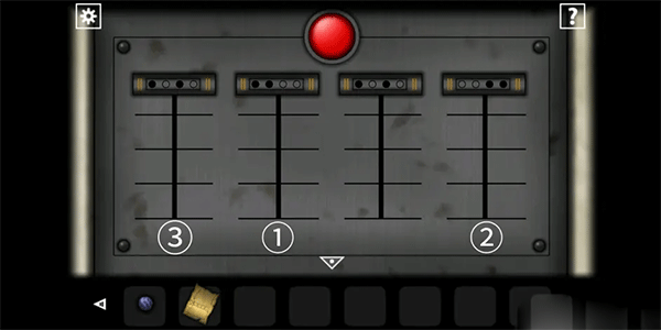 在墙上的手骨上有红色的指骨,根据指骨位置推算,需要按照顺序让①和②各往下四格,③和②各往上一格。完成后,会打开一个暗格,里面有一把钥匙。