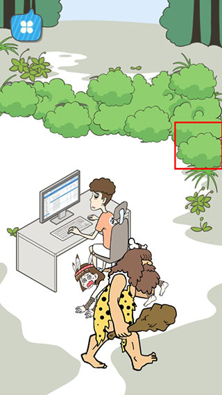 5、多次点击后面右边草丛会出现猿人,扛走女朋友后点击电脑屏幕。