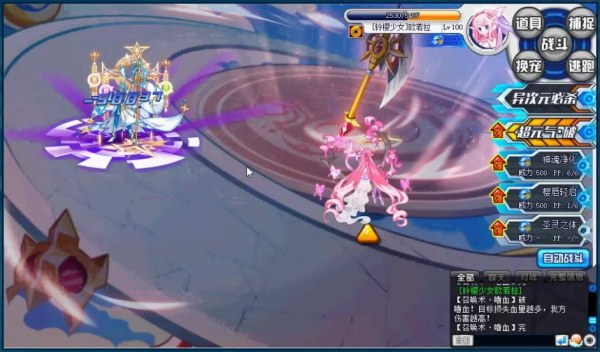 通过逍遥切换换上[樱铃少女]欧若拉,强化全属性到+10后直接输出即可(召唤师必须要用嗜血,重击不行!)。