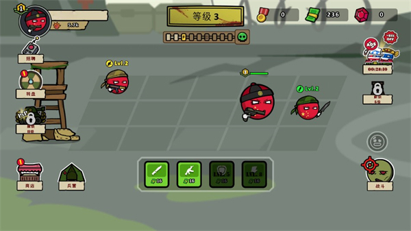 4、等级相同的士兵可以通过合成的方式升级。