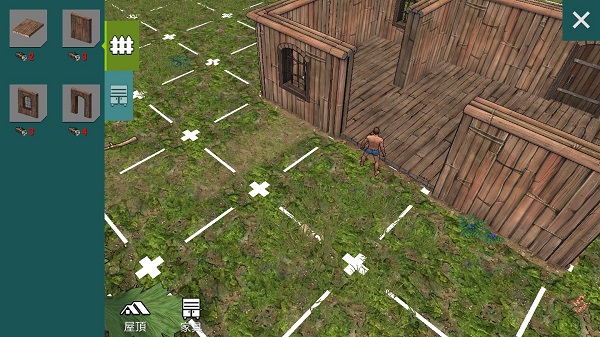 中年男子右手紧握大刀,大刀是一把近战武器也可以砍伐一些树木,最右边显示的百分比是关卡的进度,左边是背包的详情,在这里可以查看玩家目前拥有的资源和装备,玩家共可以装备8件装备,衣服类可以增加玩家的血量和防御,医疗包可以恢复玩家血量,或者复活。