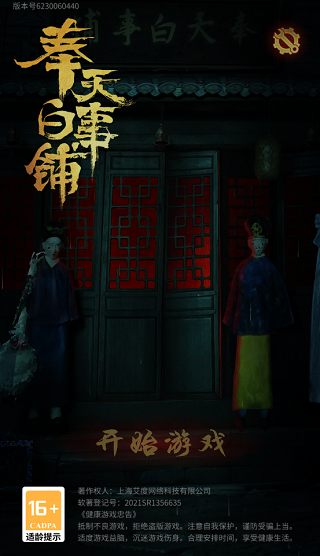 改编自《奉天白事铺》同名电影,拥有正版IP授权,人物角色和场景方面高度还原影视内容,在剧情上做了大量的创新,既给各位玩家能基于影视剧本有基础的背景理解,又有并未展示过的补充情节以及重新制作的烧脑解谜,保证玩家有着眼前一亮的非凡体验。