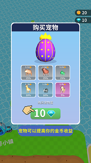 6、游戏中还有几率挖到稀有的钻石,钻石可以用来购买宠物,提高兑换金币的汇率。