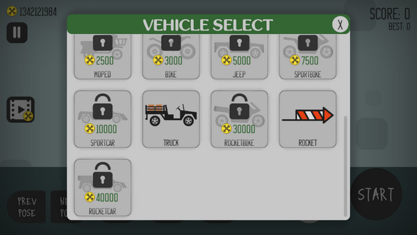 7、这就是购买车辆的页面,每种车需要不同数量的金币,有足够的才能买对应的车,当然越贵的车,受伤指数会越大的。