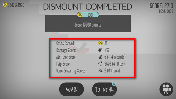 点击下方的“AGAIN”按钮,是重新开始该关卡。