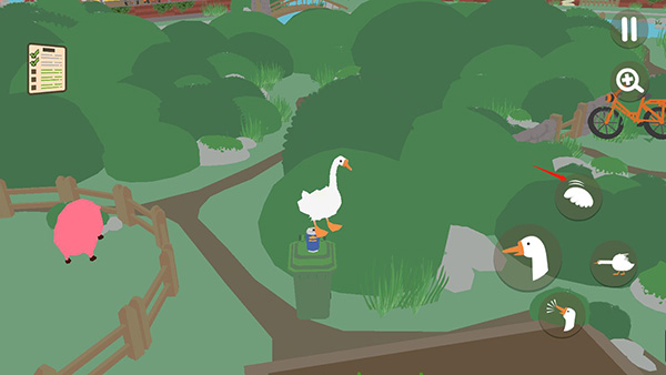 《大鹅模拟器手机版》是一款非常有趣的休闲模拟游戏,玩家扮演一只调皮的大白鹅,在人类世界闯荡并制造混乱。你可以偷钥匙、用洒水器捉弄人类,或者品尝各种食物,但要小心被抓住哦!游戏有两种模式:捣蛋模式和疯狂模式,提供丰富的任务和目标,比如偷东西、完成挑战等。此外,还有隐藏任务,比如把园丁锁在门外或让小男孩绊倒,增加了游戏的趣味性和挑战性。