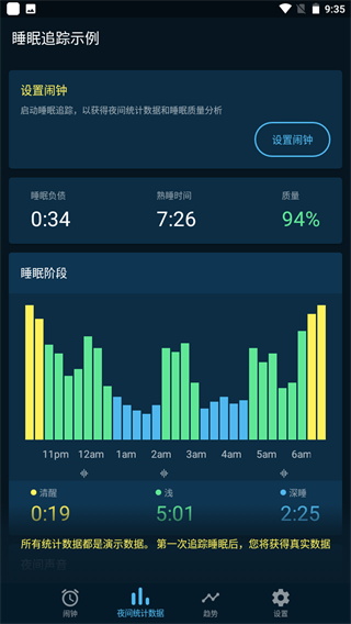 3、点击夜间统计数据,用户可以看到自己的夜间睡眠质量;
