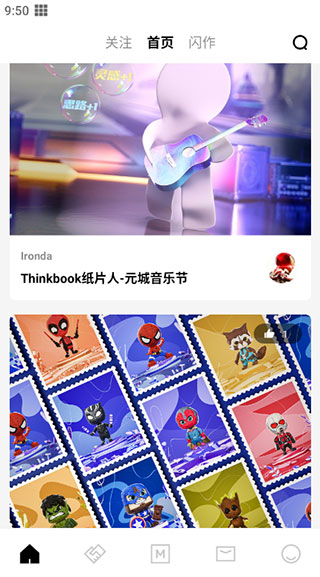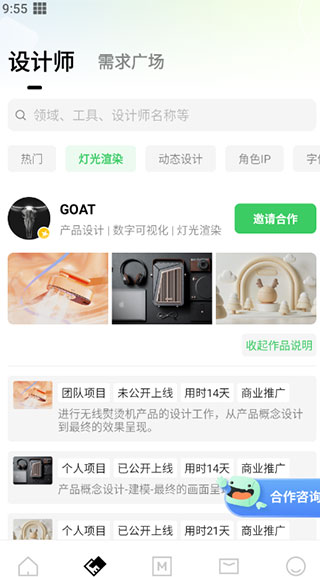 1、打开下载好的app,在首页可以看到其它设计师发表的作品。