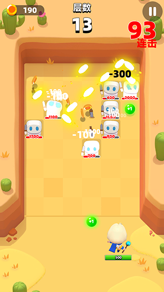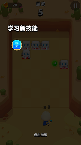 4、随着游戏层数的增加,敌人血条也会越来越厚,还会出现带技能的怪物,如何找准角度发射小球就变得很关键了。
