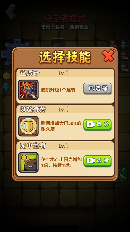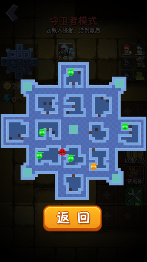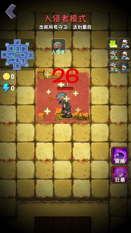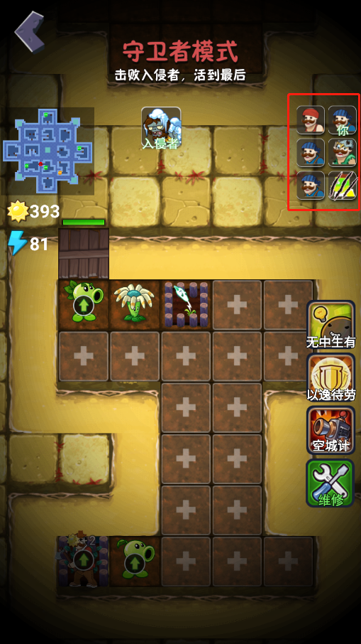 5、然后就进入到守卫者模式,玩家需要击败入侵者,也就是僵尸,然后活到最后;