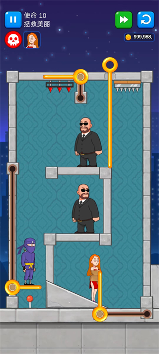 1、以正确的顺序拉动别针以拯救女孩!独特的关卡、敌方间谍、僵尸、木乃伊、杀手机器人、半机械人等等。 各种你从未经历过的障碍等待着你;