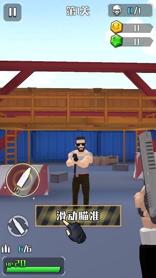 轻松简单的单手操作,即可体验枪械射击的乐趣,拯救人质,消灭邪恶团伙,成为一名狂热的特工!