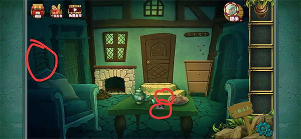 打开柜子获得红色的珠子 再回到厨房 用面包屑 木板和捕鼠器零件组成捕鼠器 放到碗柜下面的老鼠洞 放上去后退出去 再点进来会获得一个钥匙(我忘记截图了 只剩一个空的老鼠夹了)