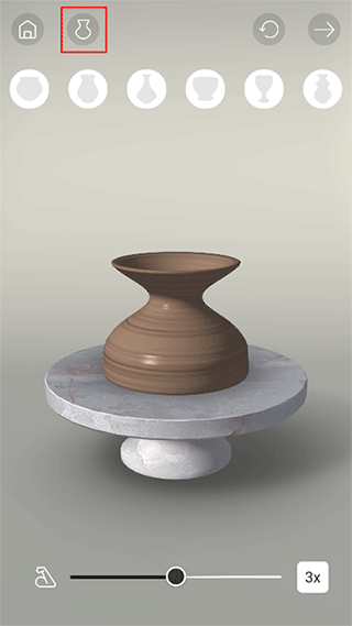 2、给陶器塑形,在界面上下左右滑动控制形状,上下滑动可以调整瓶子的高度,而左右滑动可以控制瓶子的宽度