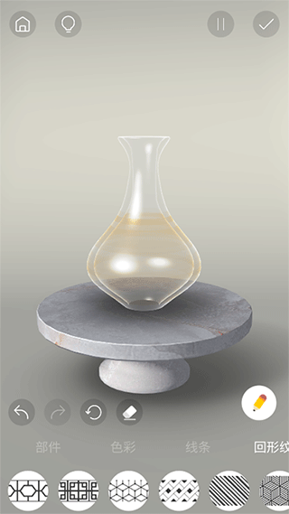 6、烧制成功后,可以再选择瓶子的部件,色彩,线条,条纹等