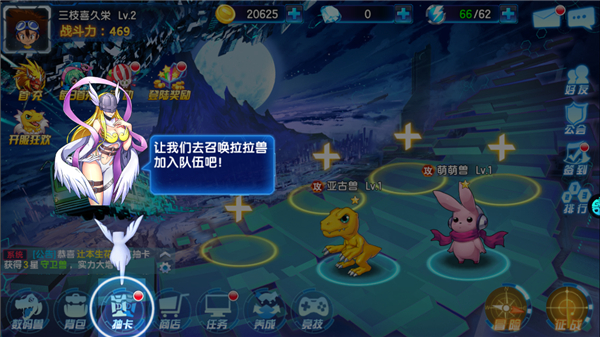 数码大冒险小七手游是一款由日系动漫数码宝贝改编而成的卡牌策略对战手游,其采用了顶级的3D物理引擎打造,不仅拥有着Q版可爱的角色设定,还有着高清细腻的战斗场景和非常精彩的游戏剧情,带你体验原汁原味的数码冒险历程。游戏操作非常简单,在战斗界面中采用了当下最流行的6人站位界面布局,轻轻用你的手指一戳就可以随意发动数码宝贝的华丽大招。