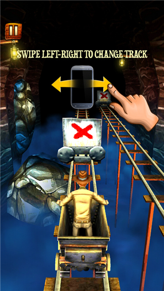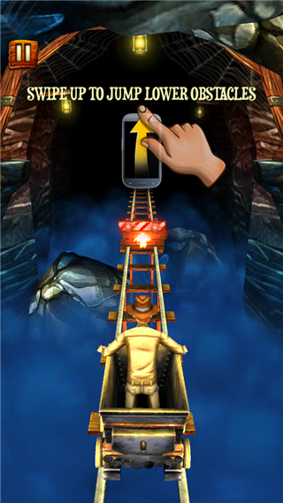 在游戏中,玩家的主要任务是尽量多地收集金块和宝石,玩家将跟随乘坐在矿车上的年轻淘金者穿梭在各种矿洞之中,一面寻宝一面探险,在保持快速前行的同时,玩家需要躲避障碍物,因为山洞四处也充满了危机,你能乘坐着小矿车坚持多久呢?滑动你的手指,让小矿车跳动起来,并且收集更多的宝藏吧!总之,矿车大逃亡绝对是跑酷类游戏玩家们的绝对大爱,精美细腻的场景切换动画更是妙不可言,随着跑酷不断的变化,声音在不同的场景也各不相同,游戏中还隐藏了八颗非常珍贵的宝石,只要集齐了就可以召唤出神龙实现一个愿望,如果你对这款游戏感兴趣的话,快来下载试试吧!