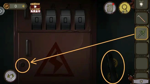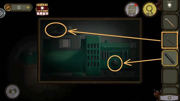 6、【闪电钥匙】打开电力室的箱子,拿到【半个虎牙钳】。箱子旁边拿到【摇杆】。
