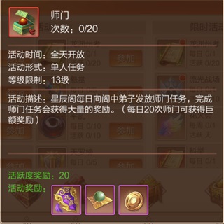 首选必做的就是师门任务!每天的前20个师门任务可以提供巨额经验!