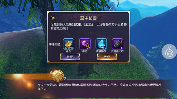 任务目标:骑乘飞行坐骑,在指定时间内穿越空中的光圈。