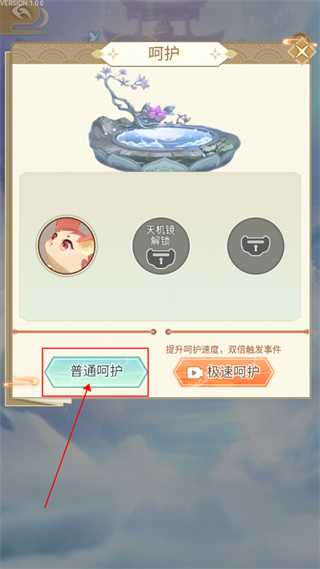 3、选择想要呵护的灵兽,点击“普通呵护”就好啦
