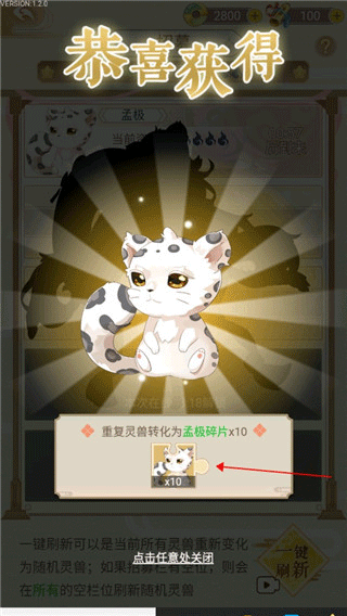 3、当灵兽提升材料不足是,再去招募一只相同的灵兽,再次获得相同的灵兽则会自动成为灵兽碎片。