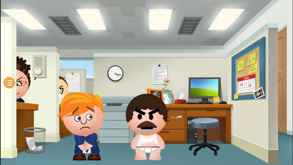 游戏继承了前作的风格,采用经典2D画面展现,主角依然是哪个看起来凶神恶煞,其实非常欺软怕硬的大老板,不同的是这一次大老板并不在办公司被打了,而是在公共区域,旁边还有其他同事可以偷偷看到,这可让老板被打显得更加大快人心了。游戏中的画面相比前作在3D模拟构图上还是有所提高的,不管是人物的效果还是整个办公室的效果,看起来都非常立体。