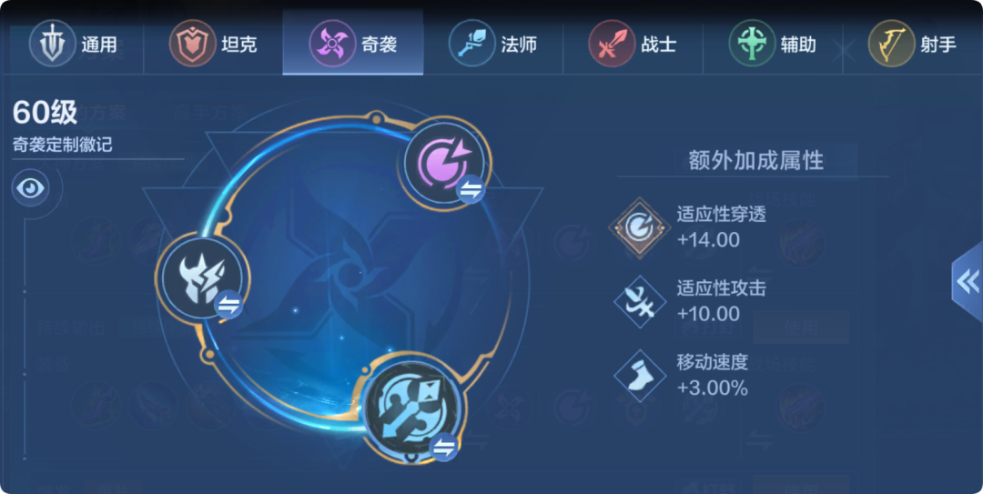 梵妮通常定位为打野,推荐使用[奇袭]徽记,提供穿透、攻击与移速。