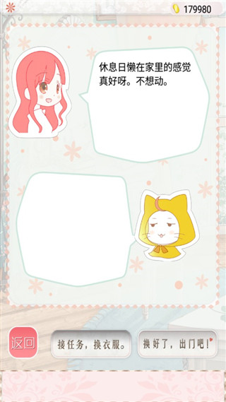 总体来说游戏的玩法还是十分的休闲易上手的,通过点击右下角的“衣服”即可进入服装搭配界面,根据不同的喜好,选择合适的服饰进行自主搭配,同时还可以与之相符的背景,这样更能衬托你独特的眼光。