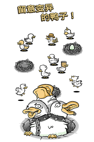 这款游戏的核心玩法围绕着孵化鸭蛋、养殖鸭子以及完成各种任务展开。每次孵化鸭子都有机会得到不同基因序列的变异鸭子,这些鸭子有的看起来特别奇怪,但这也增加了游戏的乐趣和挑战性。你可以通过收集不同的鸭子部位来丰富自己的图鉴,甚至还能给鸭子们装饰一些有趣的配件,让它们看起来更可爱。