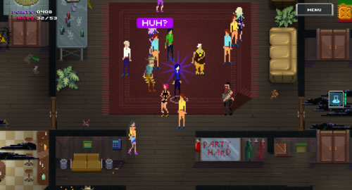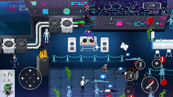 《partyhardgo》中文版是一款以潜行暗杀为主题的冒险策略游戏,整体风格复古像素风,背景音乐带有八十年代迪斯科风情,玩法刺激又带点黑色幽默。玩家扮演一个对邻居派对忍无可忍的角色,选择用刀和陷阱悄悄干掉所有人,同时还要躲避警察和隐藏尸体,避免被发现引来麻烦。