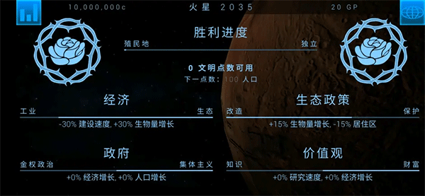 游戏的核心是改造星球,从调整温度、湿度到建设殖民地,每一步都需要精心规划。你可以选择真实行星或虚拟世界进行殖民,甚至还能创造独特的生态系统和生物。虽然一开始觉得生态派系没什么用,但后期确实能加快绿化进程。