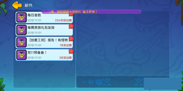 最后提醒一点,很多玩家都不知道怎么领取公告奖励,其实方法很简单,直接打开右上角的邮箱选择邮件进行阅读就能领取相应奖励。