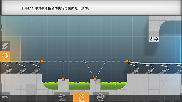 5、在你运送桥梁建筑师的过程当中,也会有着很多的障碍物阻挡你,巧妙的解决这些障碍物,就能够成功达到终点。