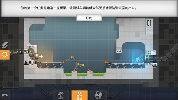 我的第一座桥。这一关已经用虚线给标注出来我们需要建造的建筑,根据提示进行操作,即可通关。