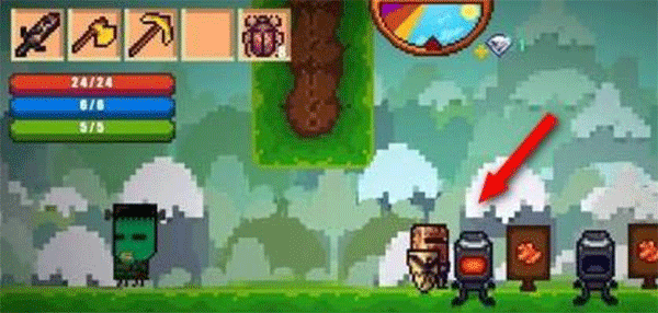 2、将5个水晶放到熔炉中去,就会自动消耗一个火虫,然后熔炉自动煅烧。