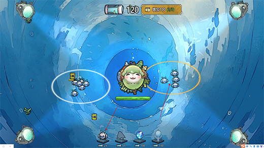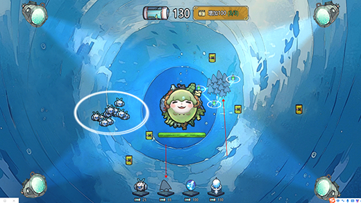 变异鱼的数量很多,它们通常成群结队的出现,朝着海洋球突击,时不我待,海洋球需要你的保护!