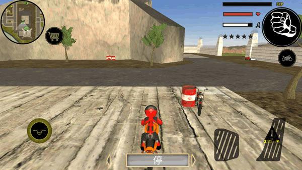 3、有各式各样的交通工具供你选择,用来追捕或者躲避,小编看到有一辆摩托车,就拿来骑了;