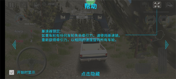 如果有任何车轮失去牵引力,请点击右上角的差速锁按钮,重新获得牵引力,游戏过程中建议全程开启