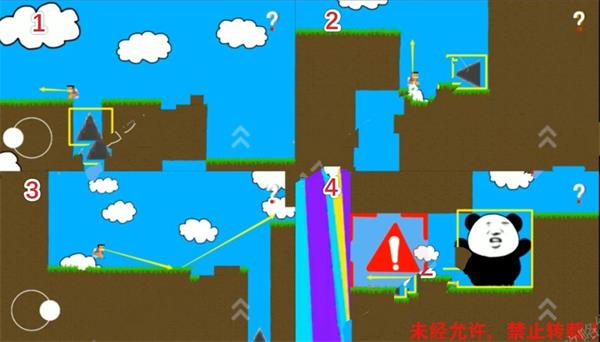 图1来到这一个陷阱旁边,稍微向前多走一点,然后迅速的返回,引出第1个陷阱中的三角形机关,迅速的返回躲避。