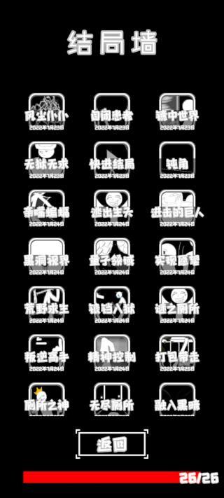 口袋淘一下纸→上衣口袋→查看左侧隔板→敲一下隔板→不敲了→往隔板下方缝隙里望一下→伸手去抽一张纸(一直抽能获得10张纸,点击物品栏使用卫生纸擦PP)→不想出去(成就:恋恋不舍)→再等一下(一直选择等待选项)→结局:自闭患者