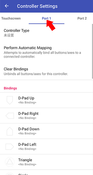 3、接着在Controller Settings上方导航栏中选中Port 1选项,并在打开的界面中设置手柄按键映射
