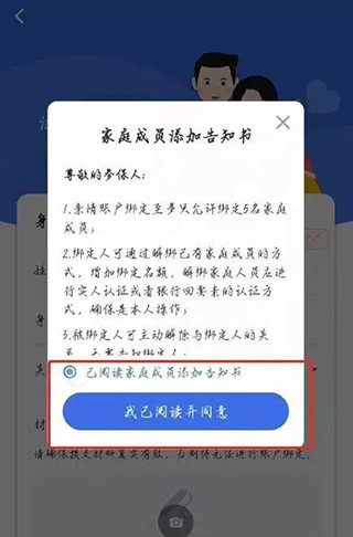 11、如果被添加的家庭成员大于16岁,点击“添加账户”后,要求选择“人脸识别”或“银行卡验证”方式完成家庭成员认证。