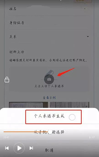 5、上传户口本照片后,可点击自动生成“个人承诺书”;