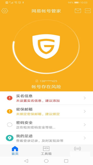 网易账号管家最新版是由网易旗下推出的一款网易帐号保护神器。软件已经积累了保护20年网易帐号保护的经验,可同时支持网易邮箱帐号和网易手机帐号的保护,而且管理可多达15个帐号,软件有安全监测、登录保护、帐号足迹、登录管理、一键锁号和快速改密的功你服务,会对帐号进行登录保护,登录网易帐号需验证,能够有效的预防帐号,通过软件,用户可以随时查询帐号的登录记录和操作记录,能够提前发现风险,而且一旦发现了风险可以立即锁定帐号,从而减少损失,非常的安全和方便。