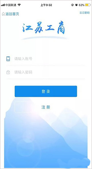 1、下载安装江苏市场监管app,点击打开注册账号,如果是老用户的话直接输入账号名与密码,点击登录;