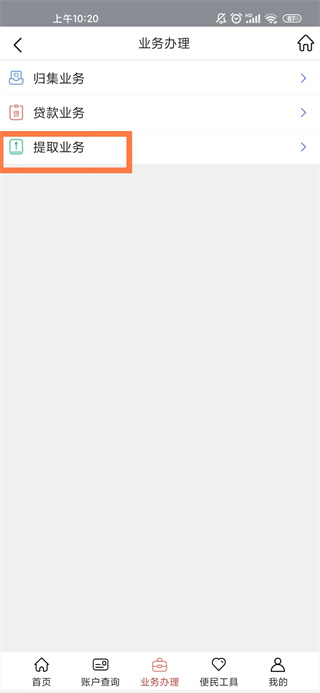3、点击进入到“业务办理”界面,我们点击“提取业务”,在其中可完成公积金领取。