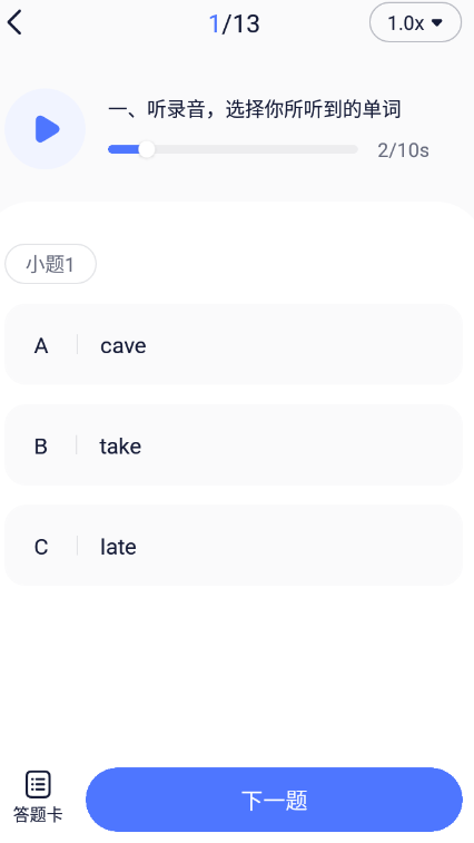 6、听说模拟:大量真实真题试卷,还原真实考场环境。