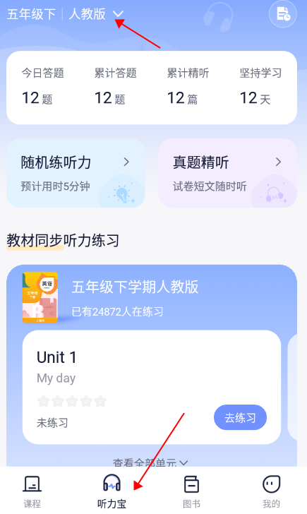 1、菜单栏点击听书宝,选择对应年级。